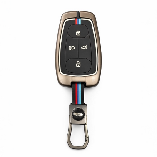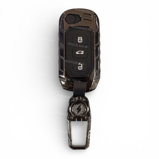 Grey Metal Keycover For Tata | 4 Button